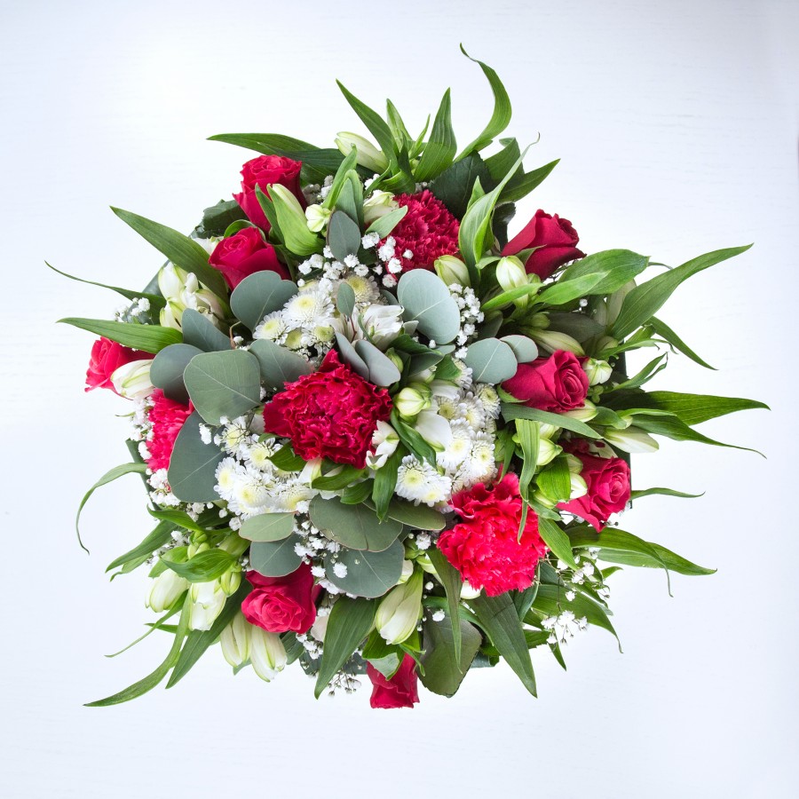 Please note, as some flowers are seasonal, we may substitute blooms with similar varieties of equal or superior quality, style and value. Treat someone special-or yourself-to the imaginative beauty of this luxury red and white bouquet. Order IMAGINATION online from elmersendflorist.co.uk today.